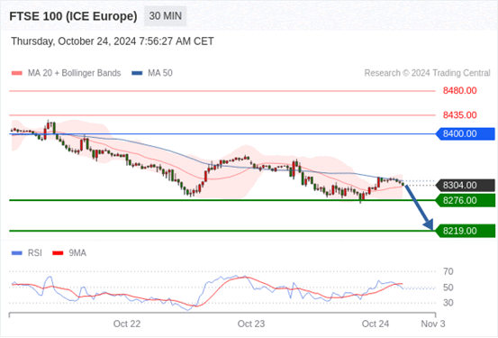 在 8400.00 之下,看跌,目标价位为 8276.00 ,然后为 8219.00 。