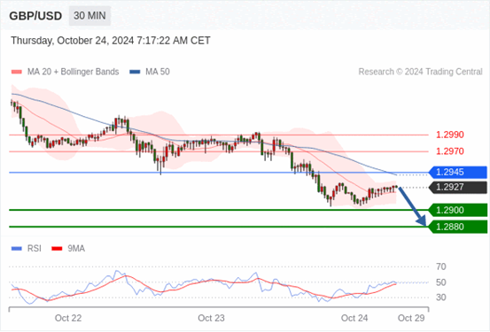 在 1.2945 之下,看跌,目标价位为 1.2900 ,然后为 1.2880 。