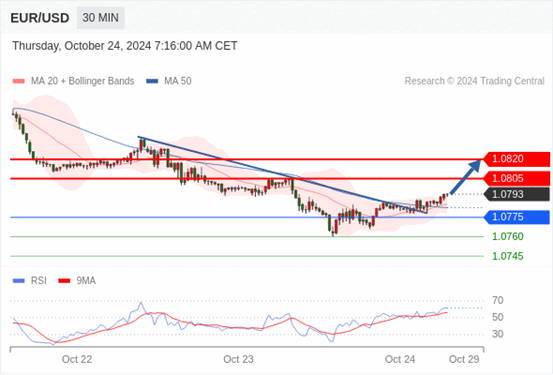 在 1.0775 之上,看涨,目标价位为 1.0805 ,然后为 1.0820 。