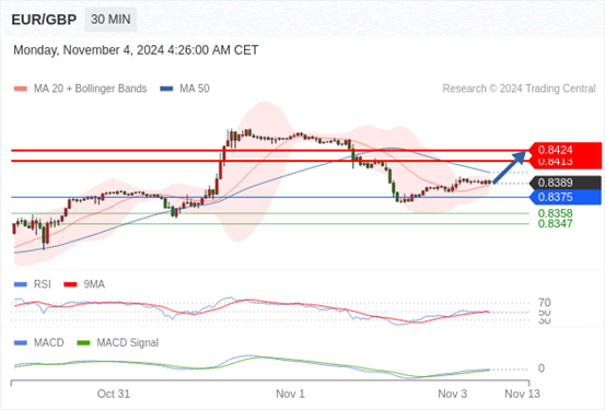 如跌破 0.8375 ,EUR/GBP 目标方向定在 0.8358 和 0.8347 。