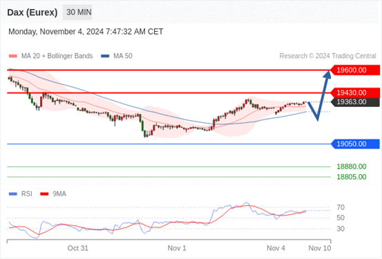 在 19050.00 之上,看涨,目标价位为 19430.00 ,然后为 19600.00 。
