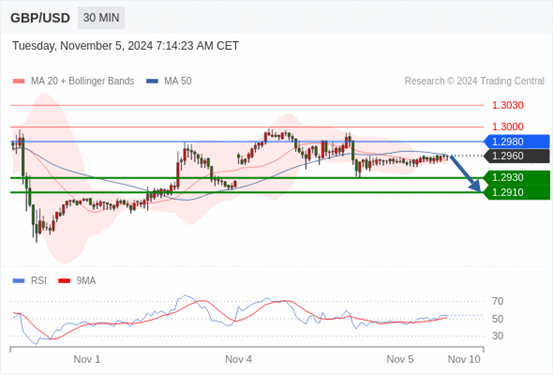 在 1.2980 之下,看跌,目标价位为 1.2930 ,然后为 1.2910 。