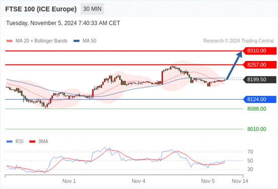 在 8124.00 之上,看涨,目标价位为 8257.00 ,然后为 8310.00 。