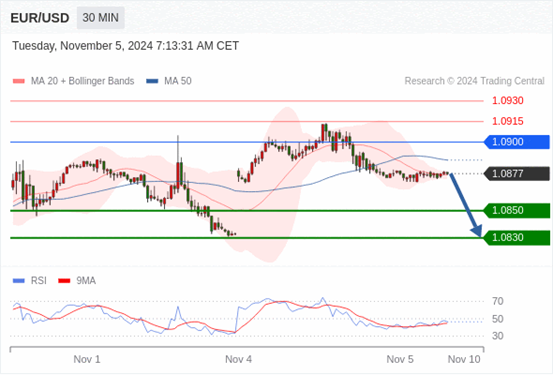 在 1.0900 之下,看跌,目标价位为 1.0850 ,然后为 1.0830 。
