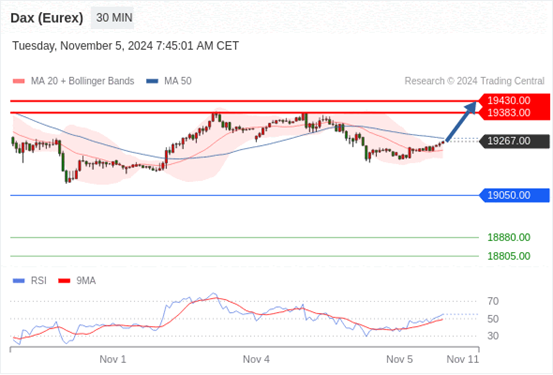 在 19050.00 之上,看涨,目标价位为 19383.00 ,然后为 19430.00 。