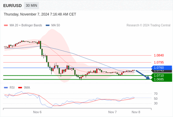 在 1.0760 之下,看跌,目标价位为 1.0710 ,然后为 1.0685 。