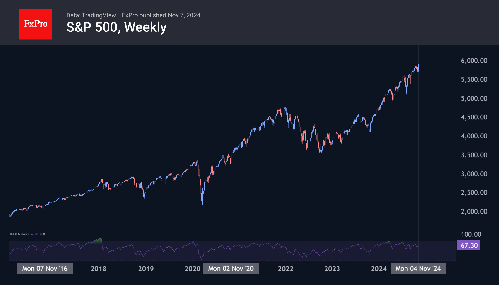 从历史上看,波动性在大选后逐渐减弱,11月至1月期间是股指涨幅最大的时期。这一次是否会出现这种情况仍是一个问题,因为市场的估值已经走得很远了,而且很少有关于白宫政策将如何改变的细节。