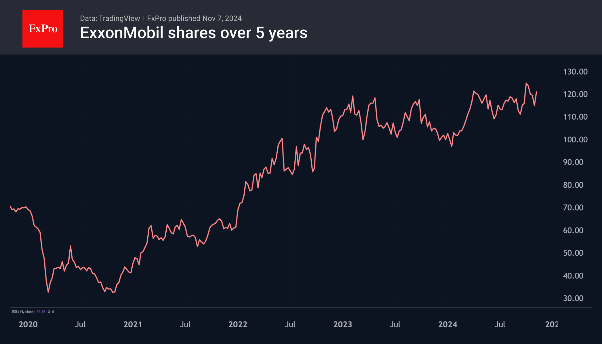 另外,值得一提的是,与共和党关系密切相关的石油行业。自本月初以来,ExxonMobil埃克森美孚的股价上涨了6%,雪佛龙的股价上涨了7%,大约是同期油价上涨的三倍。