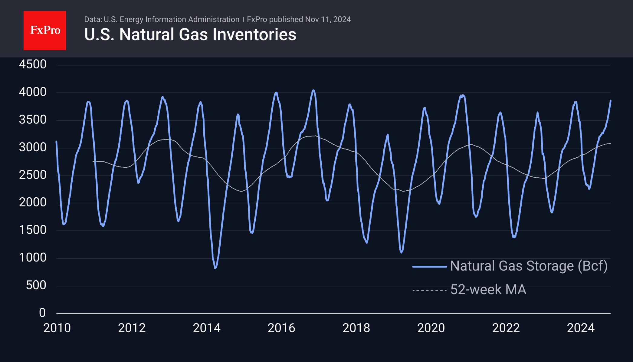 这对美国来说似乎不是问题,最新数据显示天然气库存达到4年来最高,该指数接近历史高点。