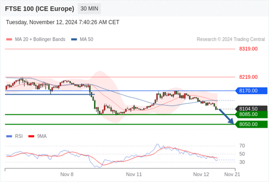 在 8170.00 之下,看跌,目标价位为 8085.00 ,然后为 8050.00 。