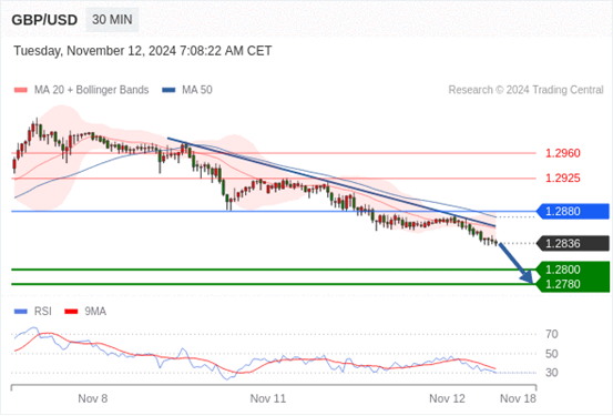 在 1.2880 之下,看跌,目标价位为 1.2800 ,然后为 1.2780 。