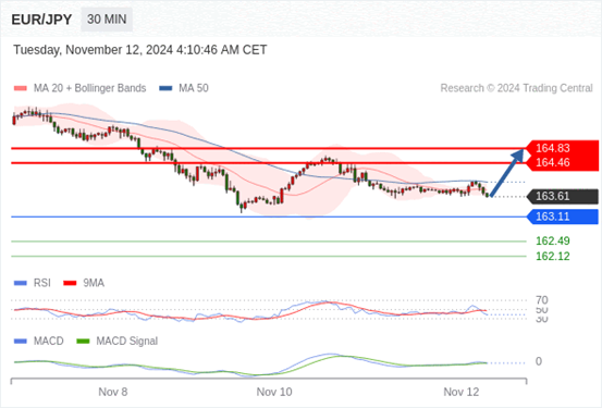 欧元/日元 当日内: 有上涨的可能,目标价位定在 164.83 。