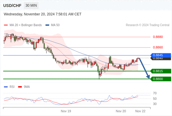 在 0.8845 之下,看跌,目标价位为 0.8815 ,然后为 0.8800 。
