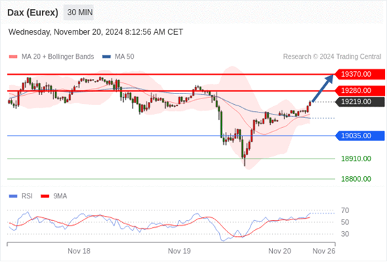 在 19035.00 之上,看涨,目标价位为 19280.00 ,然后为 19370.00 。