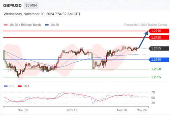 在 1.2650 之上,看涨,目标价位为 1.2720 ,然后为 1.2740 。