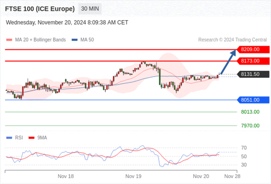 在 8051.00 之上,看涨,目标价位为 8173.00 ,然后为 8209.00 。