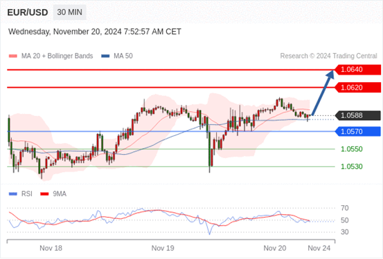 在 1.0570 之上,看涨,目标价位为 1.0620 ,然后为 1.0640 。