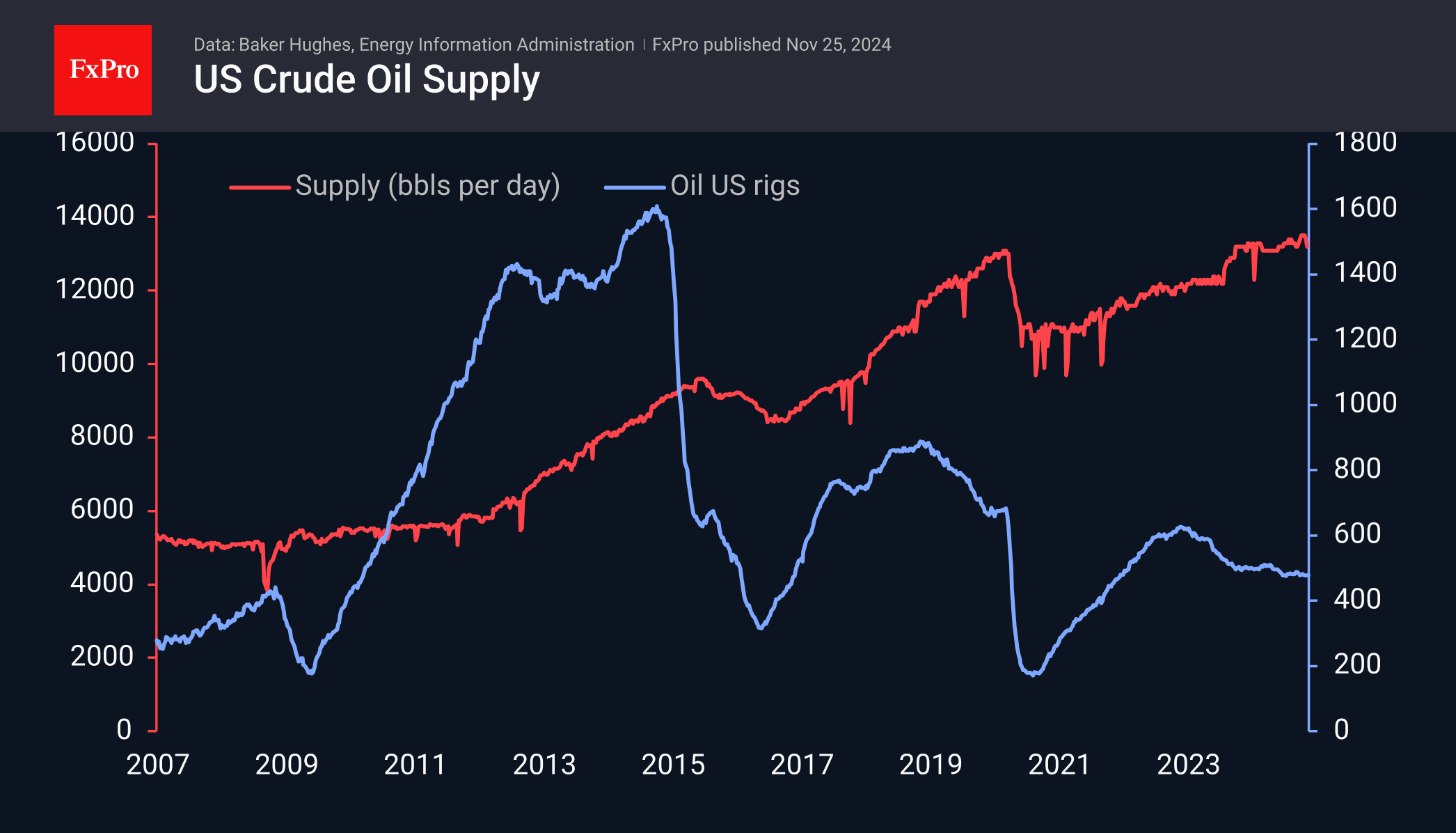 看空者还应该注意到,在过去10年中,有6年油价在11月至12月大幅下跌。在2014年和2019年,欧佩克内部存在分歧。当然,在后一种情况下,直到2020年,由于美国股市的风险偏好上升,它们才开始对油价产生巨大的负面影响。看起来我们现在也看到了类似的情况。