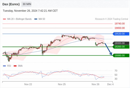 在 19530.00 之下,看跌,目标价位为 19260.00 ,然后为 19080.00 。