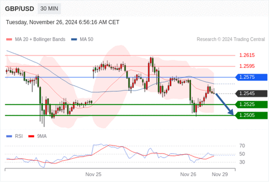 在 1.2575 之下,看跌,目标价位为 1.2525 ,然后为 1.2505 。