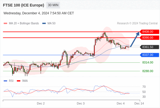 在 8337.00 之上,看涨,目标价位为 8390.00 ,然后为 8408.00 。