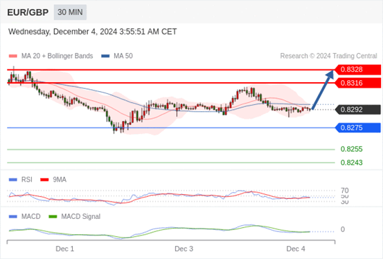 如跌破 0.8275 ,EUR/GBP 目标方向定在 0.8255 和 0.8243 。