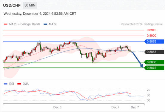 在 0.8885 之下,看跌,目标价位为 0.8830 ,然后为 0.8815 。