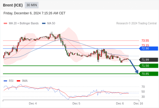 在 72.90 之下,看跌,目标价位为 71.50 ,然后为 70.85 。