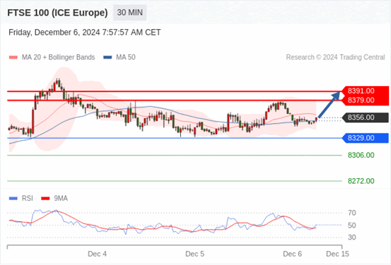 在 8329.00 之上,看涨,目标价位为 8379.00 ,然后为 8391.00 。