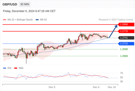 在 1.2715 之上,看涨,目标价位为 1.2770 ,然后为 1.2800 。