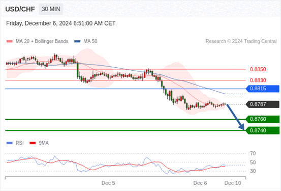 在 0.8815 之下,看跌,目标价位为 0.8760 ,然后为 0.8740 。