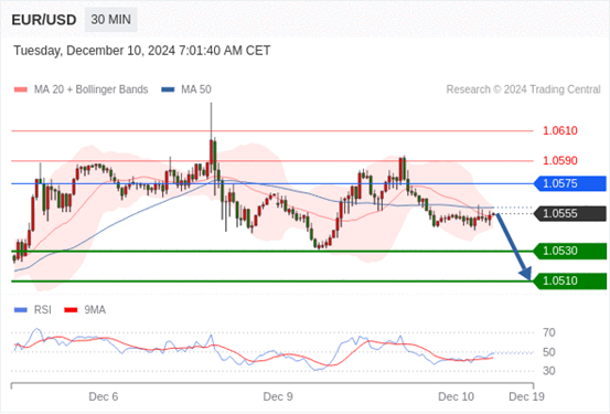 在 1.0575 之下,看跌,目标价位为 1.0530 ,然后为 1.0510 。