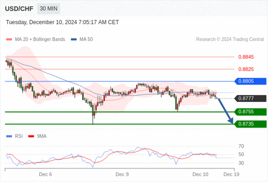 在 0.8805 之下,看跌,目标价位为 0.8755 ,然后为 0.8735 。