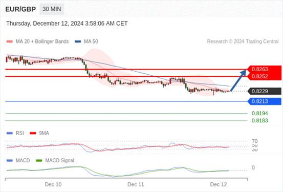 欧元/英镑 当日内: 有上涨的可能,目标价位定在 0.8263 。