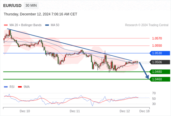 在 1.0530 之下,看跌,目标价位为 1.0480 ,然后为 1.0460 。