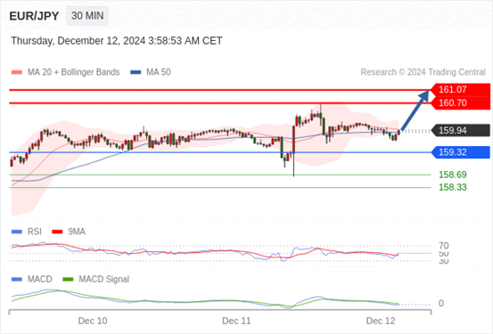 欧元/日元 当日内: 调整至 159.32 处,在反弹上升之前。