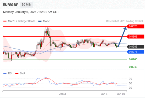 在 0.8275 之上,看涨,目标价位为 0.8305 ,然后为 0.8325 。