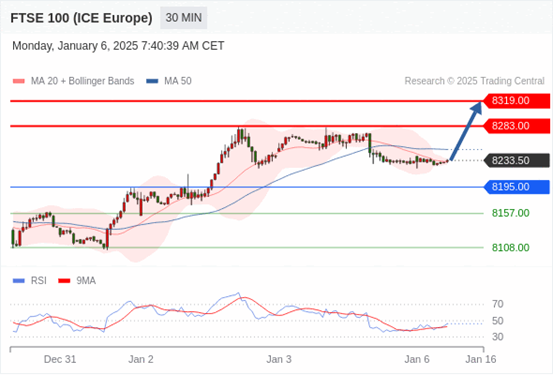 在 8195.00 之上,看涨,目标价位为 8283.00 ,然后为 8319.00 。
