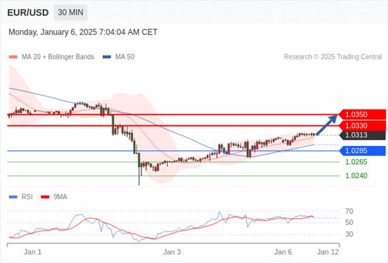 在 1.0285 之上,看涨,目标价位为 1.0330 ,然后为 1.0350 。