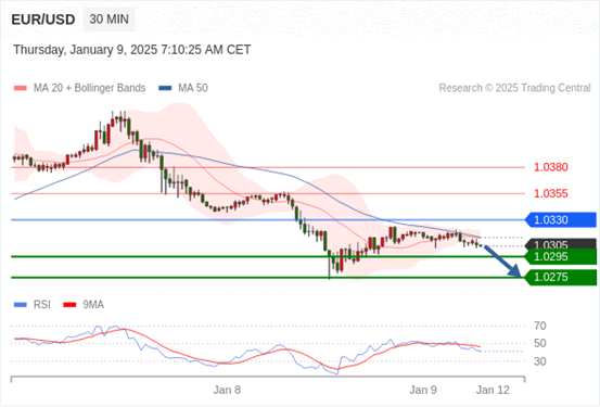 在 1.0330 之下,看跌,目标价位为 1.0295 ,然后为 1.0275 。