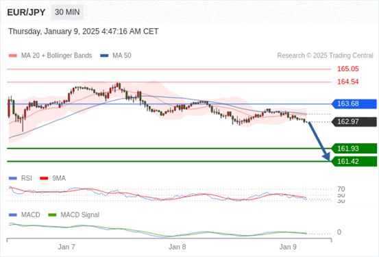 欧元/日元 当日内: 看跌,在 163.68 之下。