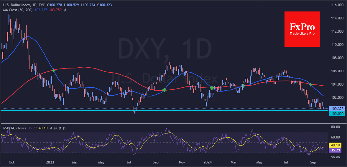 注:此文章由Fxro高级分析师AlxKutikvich撰写 在两周的美元疲软后,外汇市场正在经历一次回调。美元指数(DXY)在短暂跌至100以下后,正在回升。在9月18日的下跌中,此水平位已经吸引了买家,但未能扭转趋势。 自年初以来,美元每当触及或经过这一水平时,都会引发市场关注,并触发了几次4-7%的反弹。显然,看涨者期盼着