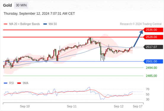 查看交易中心全球研究部门今日的市场观点。从受欢迎的交易产品中探索新的交易方法与机会。 欧元/美元黄金现货英镑/美元欧元/日元欧元/英镑美元/瑞郎德国DAX指数期货(urx)布伦特原油(IC)英国富时100指数期货 黄金现货当日内:目标位为2536.00。 转折点: 2501.00 交易策略: 在2501.00之上,看涨,目标价位为2528.00,