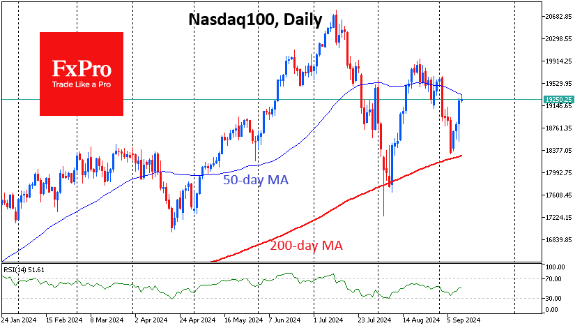 注:此文章由Fxro高级分析师AlxKutikvich撰写 美国8月的通胀数据与预期相符,但引发了市场的一些有趣波动。最初的市场反应较为中性,但随后市场开始重新评估对联邦基金利率的预期对一周内降息25个基点而不是50个基点的预期转变最初引发了风险资产的抛售潮。 然而,市场情绪很快发生了巨大变化,使得纳斯达克100指数不