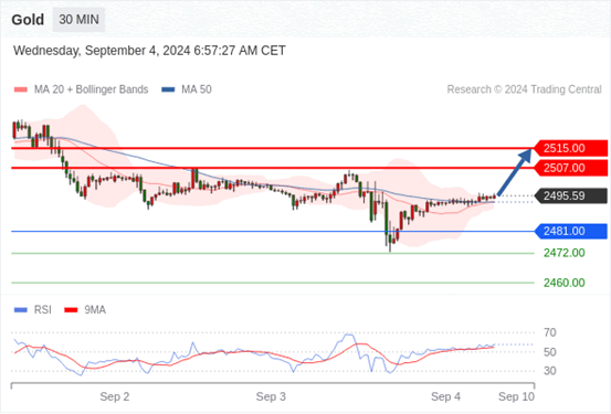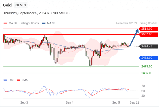 查看交易中心全球研究部门今日的市场观点。从受欢迎的交易产品中探索新的交易方法与机会。 欧元/美元黄金现货英镑/美元欧元/日元欧元/英镑美元/瑞郎德国DAX指数期货(urx)布伦特原油(IC)英国富时100指数期货 黄金现货当日内:超短线(当日内)支撑位在2494.00附近。 转折点: 2494.00 交易策略: 在2494.00之上,看涨,