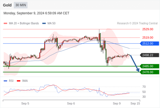 查看交易中心全球研究部门今日的市场观点。从受欢迎的交易产品中探索新的交易方法与机会。 欧元/美元黄金现货英镑/美元欧元/日元欧元/英镑美元/瑞郎德国DAX指数期货(urx)布伦特原油(IC)英国富时100指数期货 黄金现货当日内:下跌趋势。 转折点: 2512.00 交易策略: 在2512.00之下,看跌,目标价位为2485.00,然后为2
