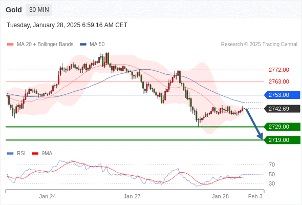 查看交易中心全球研究部门今日的市场观点。从受欢迎的交易产品中探索新的交易方法与机会。 欧元/美元黄金现货英镑/美元欧元/日元欧元/英镑美元/瑞郎德国DAX指数期货(urx)布伦特原油(IC)英国富时100指数期货 黄金现货当日内:短期关键阻力位在2753.00。 转折点: 2753.00 交易策略: 在2753.00之下,看跌,目标价位为2