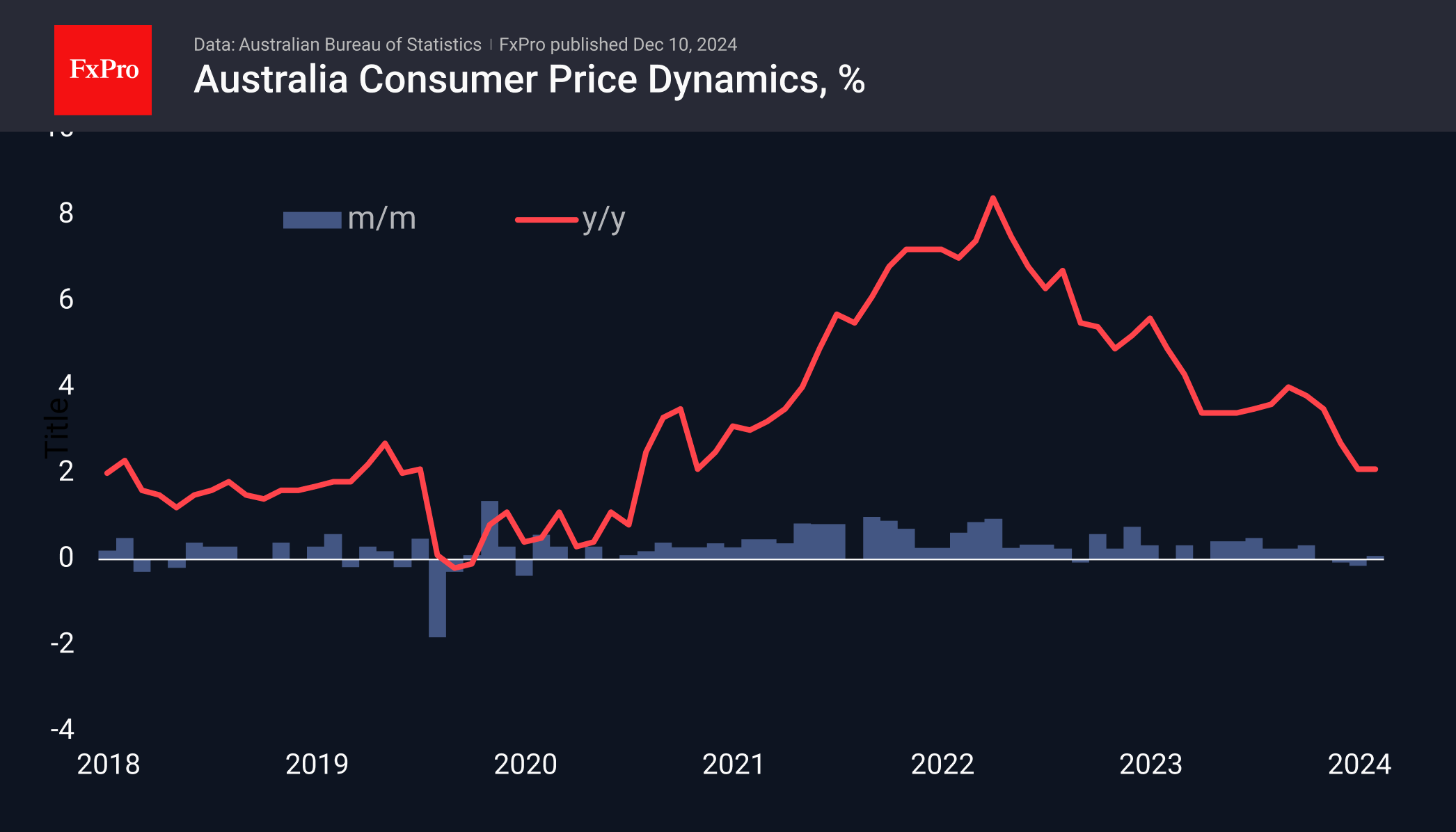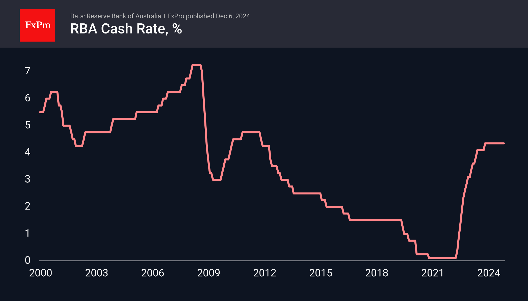 注:此文章由Fxro高级分析师AlxKutikvich撰写 澳大利亚储备银行将现金利率维持在4.35%不变,将其维持在过去13个月的13年高点。 大多数澳洲央行同行今年已在不同时期采取宽松货币政策的行动,其中包括邻国新西兰央行的大幅降息,这表明通胀正处于下行趋势。澳大利亚9月和10月消费者通胀率为2.1%(最新数据)。然而,这