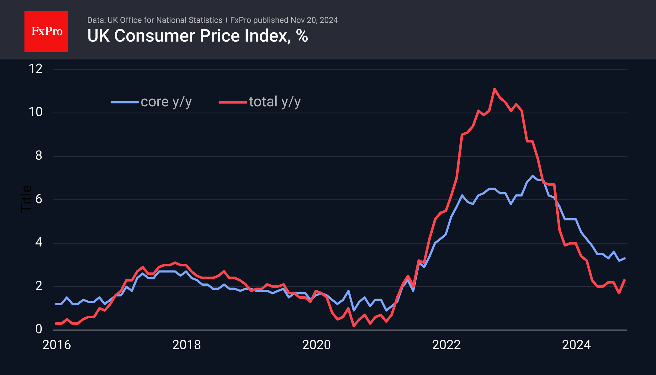 注:此文章由Fxro高级分析师AlxKutikvich撰写 英国的通胀超出预期且明显加速,但这只是暂时提振了英镑。当英镑兑美元汇率突破1.2700时,遭遇了进一步的抛售。 10月消费者物价指数(CI)上涨0.6%,年通货膨胀率从1.7%加速升至2.3%,为3月以来的最高水平。这些围绕目标的波动看起来并不能够构成第二轮通货膨胀的重大威胁