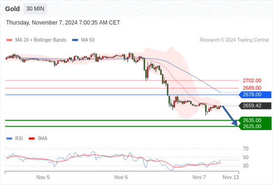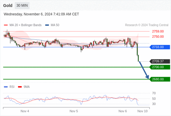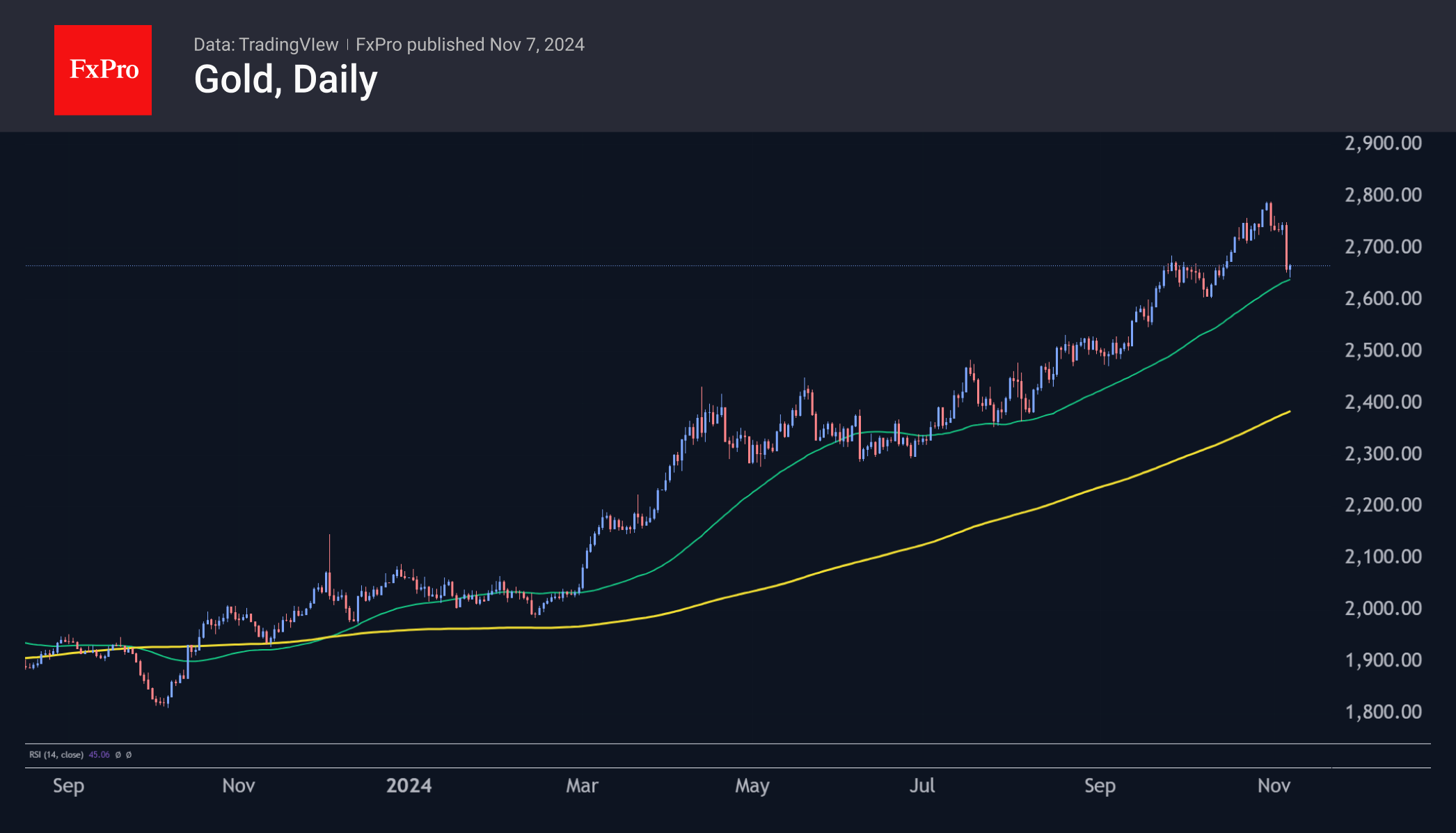 注:此文章由Fxro高级分析师AlxKutikvich撰写 在总统选举结果公布当天,黄金价格下跌超过3%。从10月底的高点到最近的低点,累计跌幅超过了5%。到目前为止,这看起来不像是一场悲剧。金价从去年10月的低点上涨了50%以上,现在只是在释放压力。我们将金价下跌归因于这样一个事实,即在大选前的不确定性之后,大量投资黄金